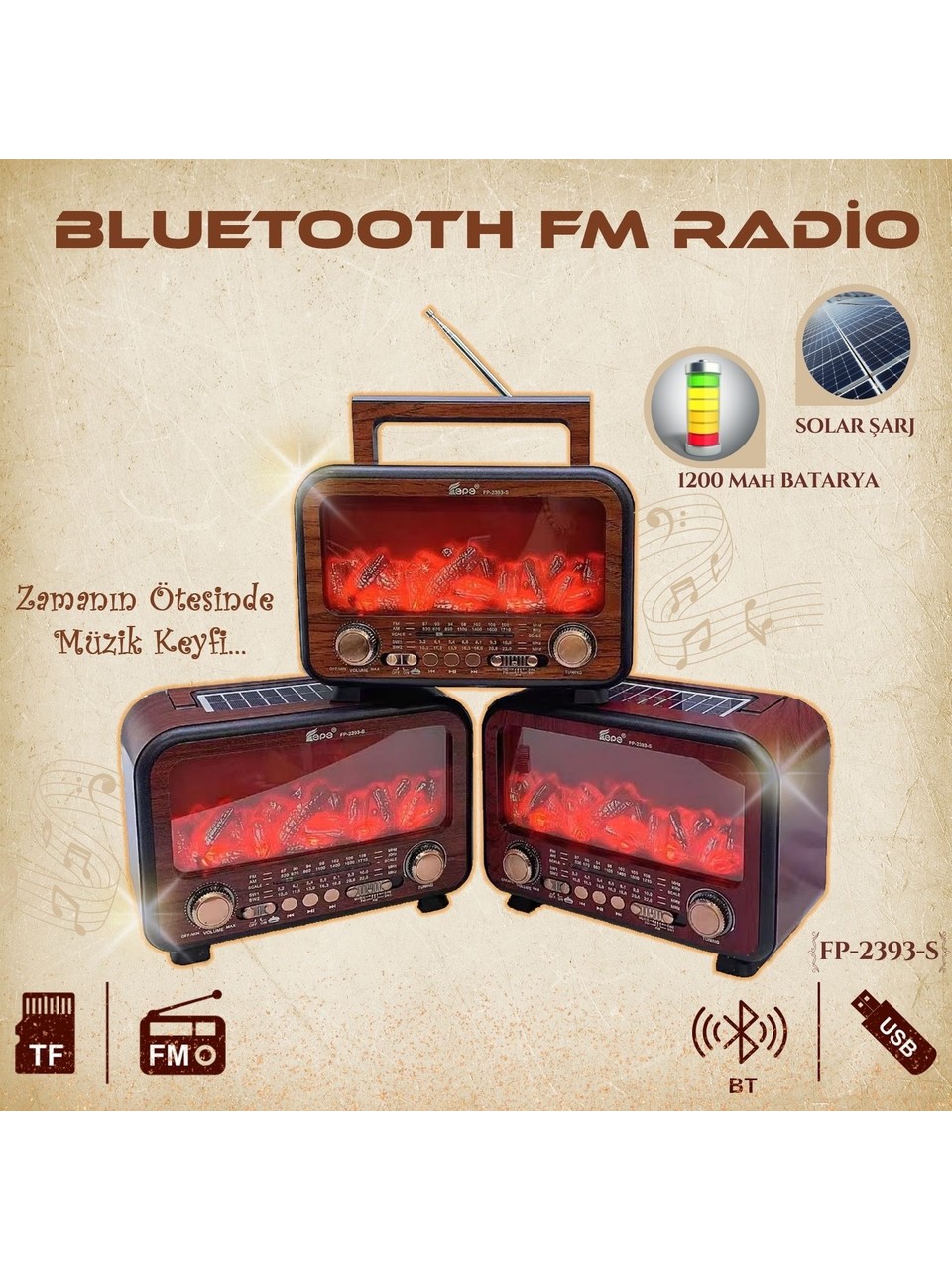 FP-2393-S USB/FM/TF/BLUETOOTH GÜNEŞ ENERJLİ ŞÖMİNELİ NOSTARJİ RADYO