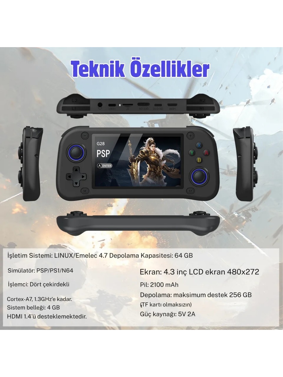 ???? G28 Retro Game Console – 4.3” IPS HD Ekranlı, 10.000 Oyun, 64GB Depolama, Uzun Ömürlü Batarya
