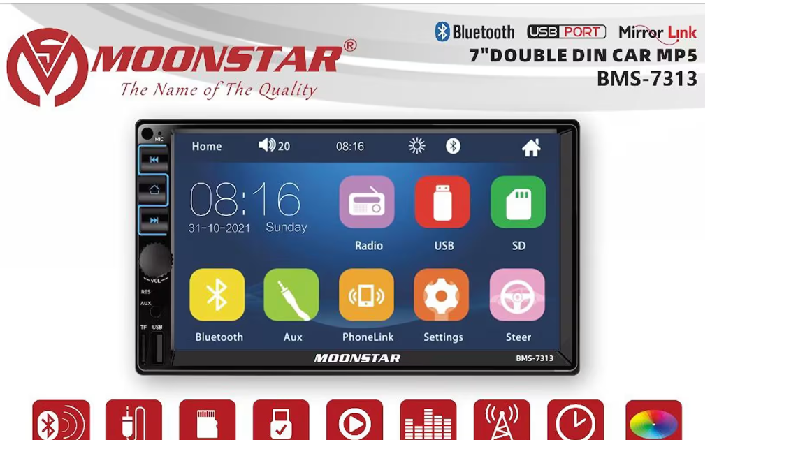 MOONSTAR BMS-7313 7 İNÇ ARAÇ MULTİMEDYA CAR MP5 DOUBLE TEYP