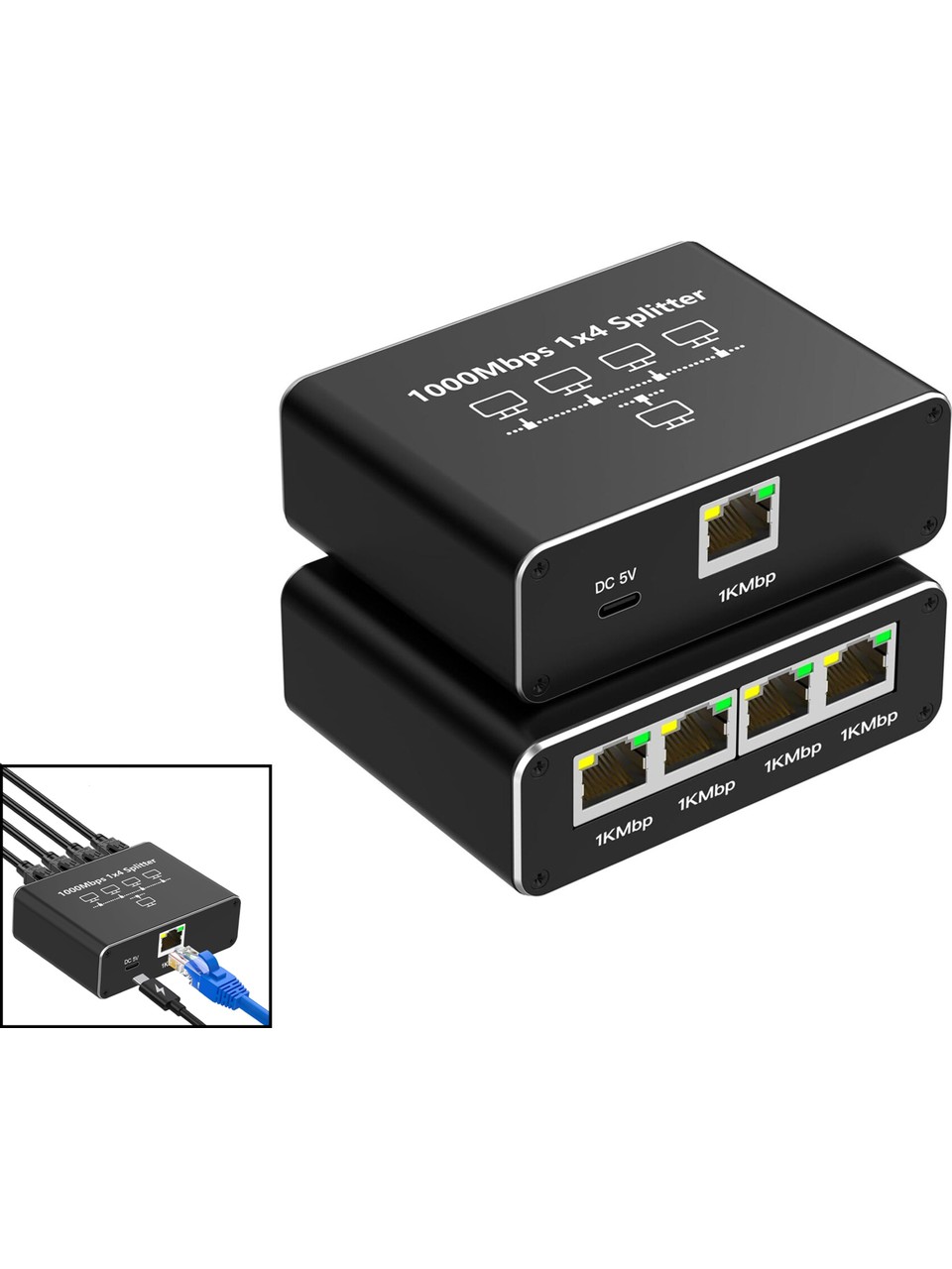 ZR889 1000Mbps İnternet Hızı, Cat 8, Cat 7, Cat 6 Için Type C Güç Kablosu ile RJ45 Network Splitter Bilgisayarlar, TV'ler, Yönlendiriciler Için Adaptör 1to4