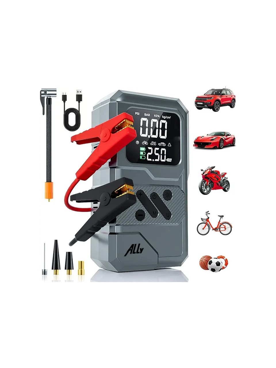 Ally ST-9654 Taşınabilir Göstergeli Araç Lastik Şişirme Ve Starter Akü Takviye Seti-(5775)