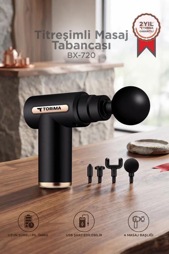 Torima BX-720 Siyah Darbeli Titreşimli Şarjlı Sporcu Masaj Tabancası Masaj Aleti Kas Egzersiz Aleti